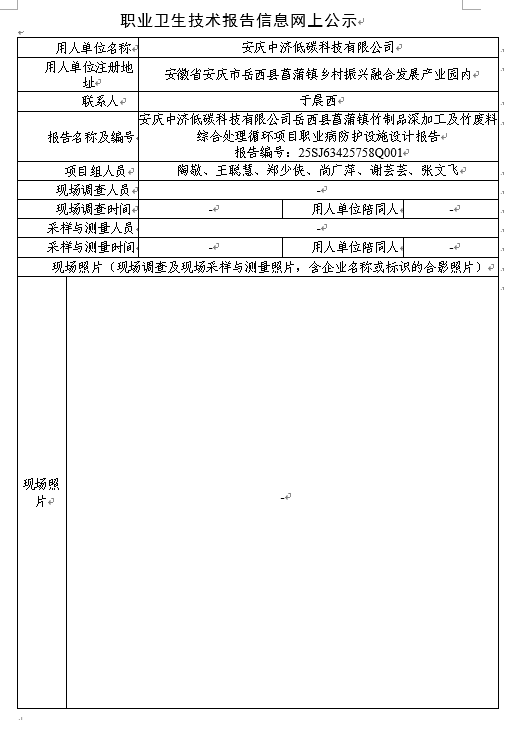 安慶中濟低碳科技有限公司岳西縣菖蒲鎮竹制品深加工及竹廢料綜合處理循環項目職業病防護設施設計報告